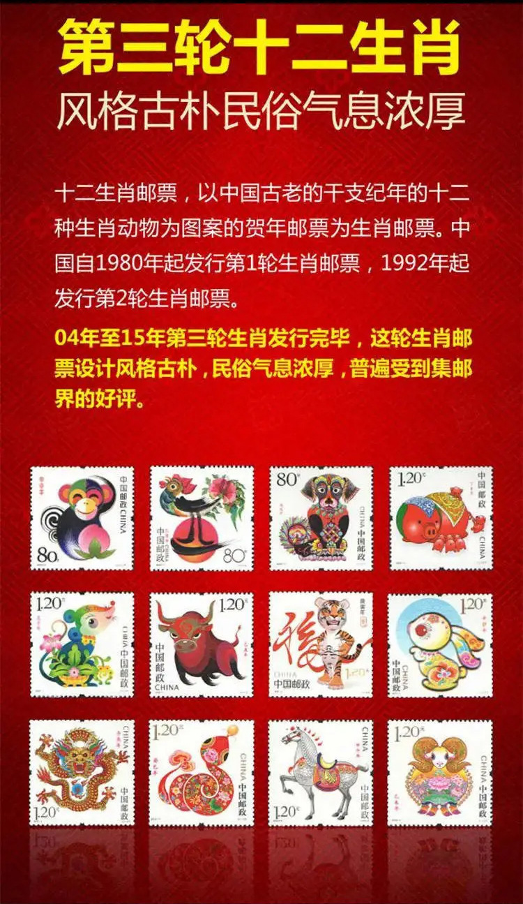 第三轮十二生肖邮票大全套,一次集齐